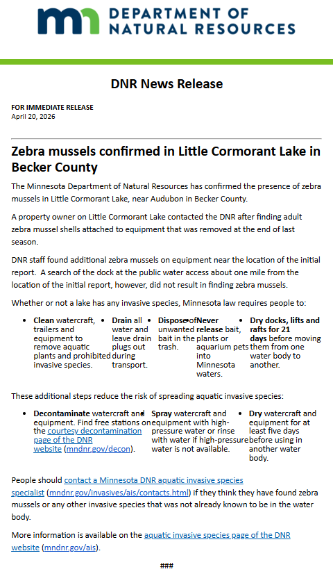 The Little Cormorant Lake Association (LCLA) is a 501(c)(3) nonprofit corporation dedicated to the betterment of Little Cormorant Lake. The LCLA is the voice of and advocate for lakeshore owners. Through programs and projects funded by the contributions of members and friends we can make the Little Cormorant Lake Association even stronger. The LCLA has been involved in projects including lake management, walleye stocking, water quality monitoring and coordinating annual social activities (Spring breakfast, 4th of July boat parade).